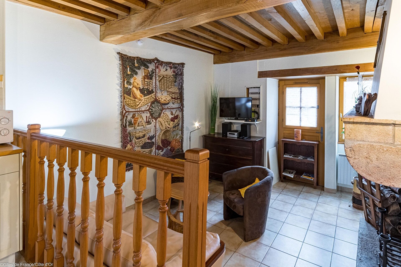 Dans un ancien corps de ferme datant de 1830 entièrement rénové, sur la même propriété que les chambres d'hôtes des propriétaires, gîte indépendant avec terrasse et véranda privatives, avec vue exceptionnelle sur la tour du château : au rez-de-chaussée, cuisine entièrement équipée, donnant sur un petit salon chaleureux, avec TV écran plat. A l'étage, une chambre avec 1 lit de 160 cm, salle d'eau avec WC. Extérieur agréable et propice à la détente, au calme, avec salon de jardin et transats.